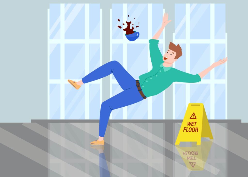地板剛清潔完,客人走過滑倒受傷,